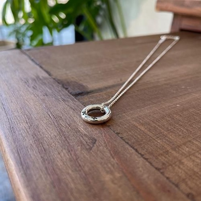 銀の丸棒をドーナッツ状に丸めてミンサー柄を刻印しました。 鏡面に磨き上げ、シンプルな表情になっていますのでコーディネートしやすくなっております。 「いつ(五つ)の世(四)までも、足しげく私の元に通ってください」との思いを込めながら、八重山の女性が思いを寄せる男性に送ったとされる八重山ミンサー織。 思いを寄せる方へのプレゼントにも最適な一品です。 銀の塊を職人が丹念に一つずつ形作っております。 ミンサー柄は四角いタガネを使って一つ一つ描いています。 ⚪︎素材について この商品はトップのチャームもチェーンもシルバー925で作られています。 ⚪︎サイズについて トップのチャーム部分の直径は約14mm、厚み約3mmです。 チェーンの太さは約1.2mmで長さは40cm〜45cmで調節出来るアジャスターが付いています。 ⚪︎刻印について ペンダントは刻印が出来ません。 ⚪︎納期について 写真の商品はサンプルになります。 ご注文をいただいてからの制作になります。 一点一点完全手作りのため、制作には約2週間程いただいております。 ⚪︎ラッピングについて 画像のように商品は巾着袋に入れた後、説明書と共に白い紙箱に入れています。(巾着袋の色と柄は写真と異なります。) それをエアパッキンで包み、各配送方法で使用する外箱に入れて発送致します。 (レターパックライトは厚み制限がありますので、商品を巾着袋に入れたあと、平たいダンボール箱に入れてそれをそのままレターパックライトの封筒に入れます。) ⚪︎配送方法について ゆうパック:お届けの日時指定が可能です。指定した日時に郵便局員がお届け先の住所に直接配達いたします。商品の完成が近づきましたらメールにて連絡いたします。その際にご希望の配達日時をお知らせください。 クロネコヤマトの宅急便:ゆうパックと同様です。クロネコヤマトの配達員が配達します。 レターパックプラス:商品が完成次第お送りいたします。日時の指定は出来ませんが、郵便局員による直接手渡しの配達になります。 レターパックライト:商品が完成次第お送りいたします。日時指定は出来ません。お届け先ご住所のポストに投函されます。厚み制限がありますので簡易包装での梱包となります。