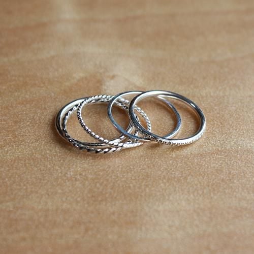 華奢な銀線を使った繊細なデザインになっていますが5本合わせれば力強いイメージの指輪になります。
