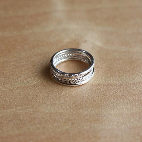 3番目が細い銀の丸線を2本よじった指輪