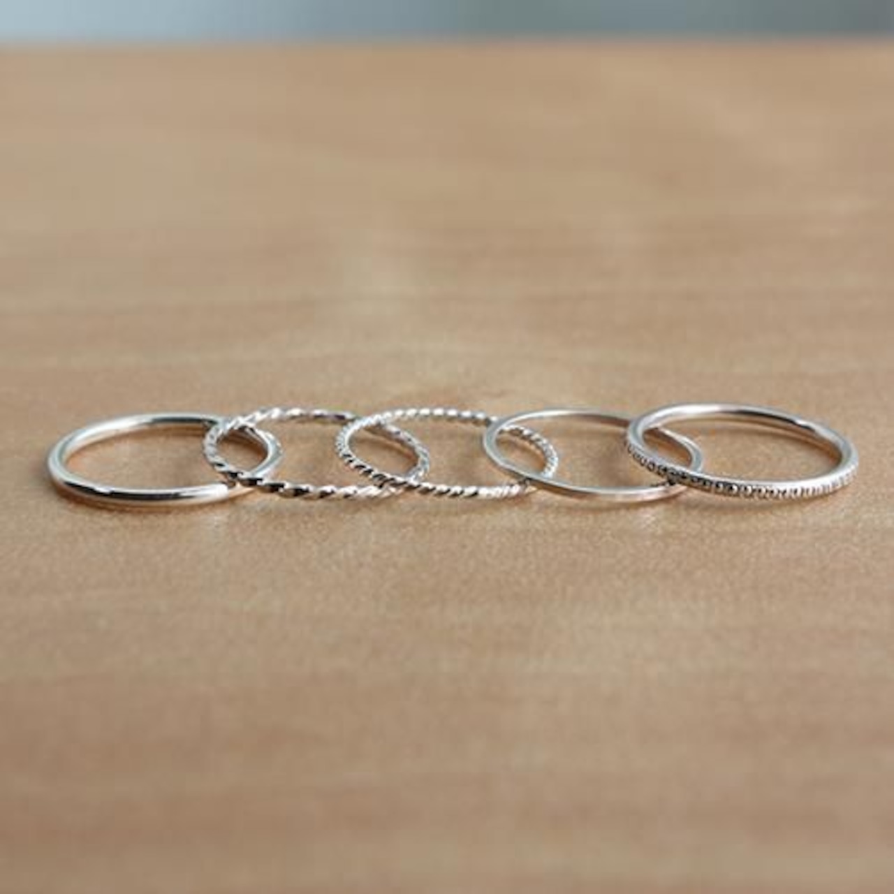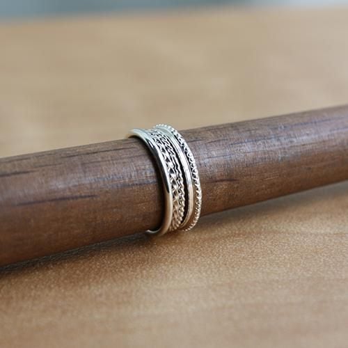 5本ありますので、順番を変えて指にはめたり他の指輪と合わせたり、3本だけつけてみたりと色々と楽しめる指輪です。