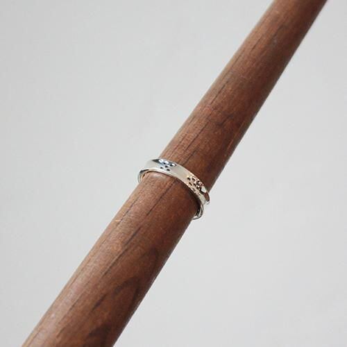 全て手作業で一点一点丁寧に仕上げていきますのでとても時間がかかりますが機械で切削したり型取りして量産した場合よりも柔らかく温かみのある指輪に仕上がります。