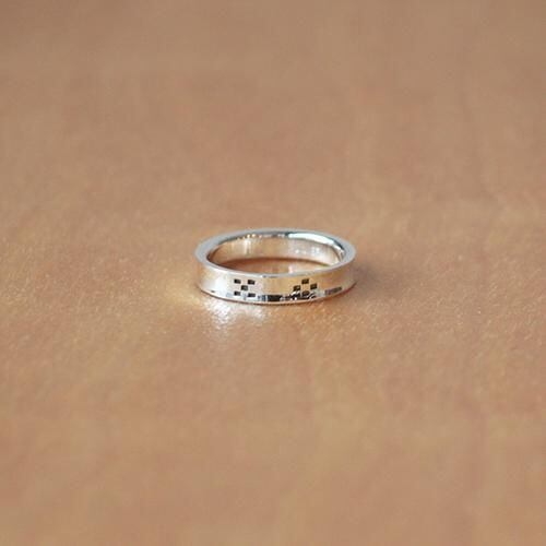 逆甲丸リングの上にミンサー柄を施し鏡面に磨き上げました。