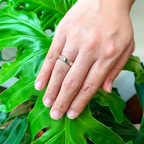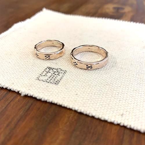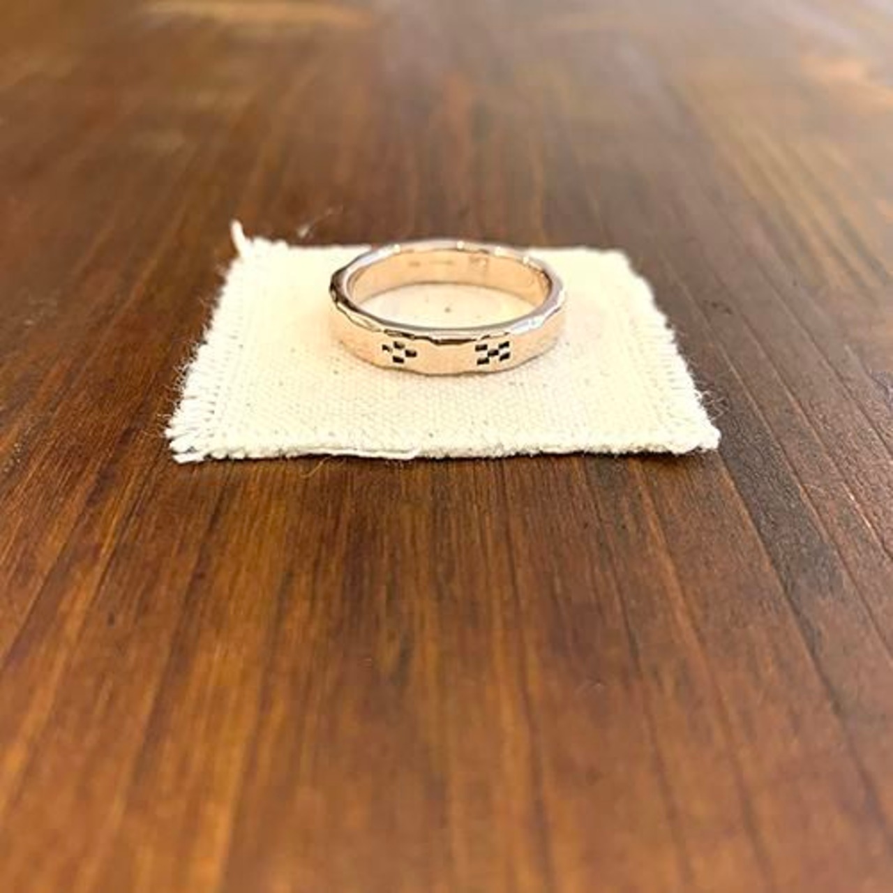 槌目のピンクシルバーにミンサー柄をデザインしたリングです。