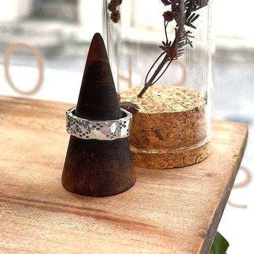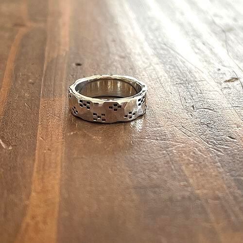 槌目の指輪全面にバランス良くミンサー柄をデザインしたリングです。