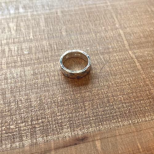 幅6mm、厚み2mmの太めの指輪にミンサー柄を全て一つ一つ刻印しています。