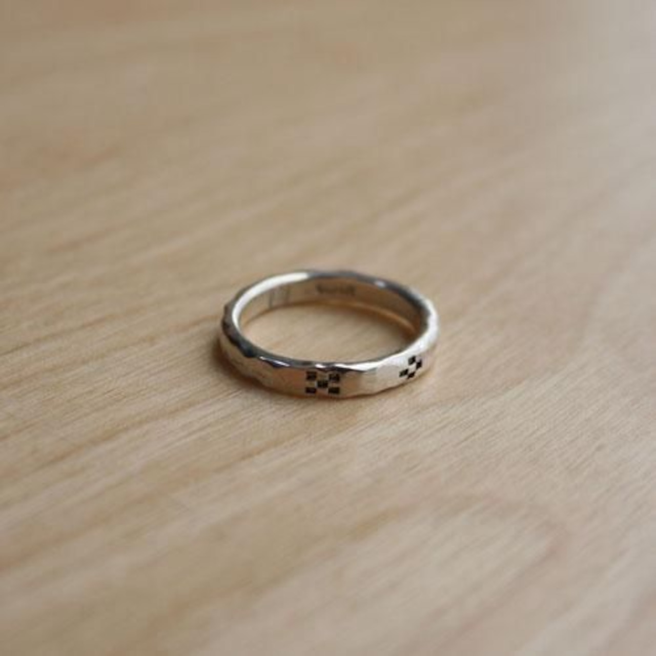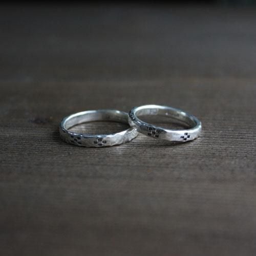 槌目の指輪にミンサー柄をデザインしたリングです。