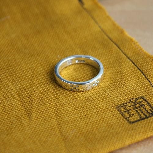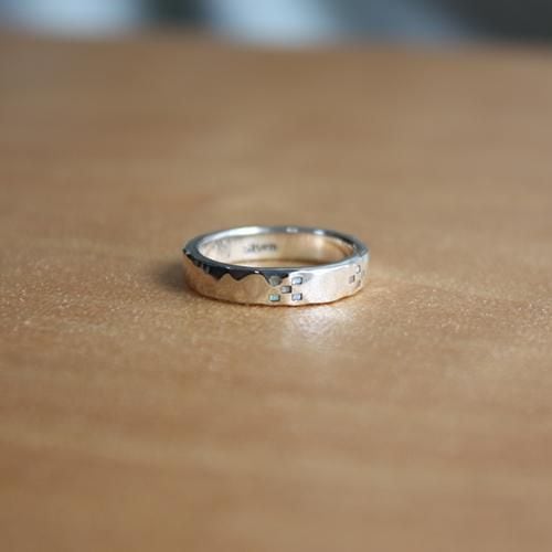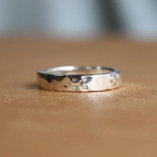 槌目の指輪にミンサー柄をデザインしその柄に螺鈿細工を施しました。