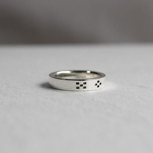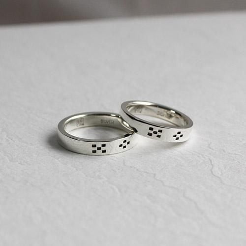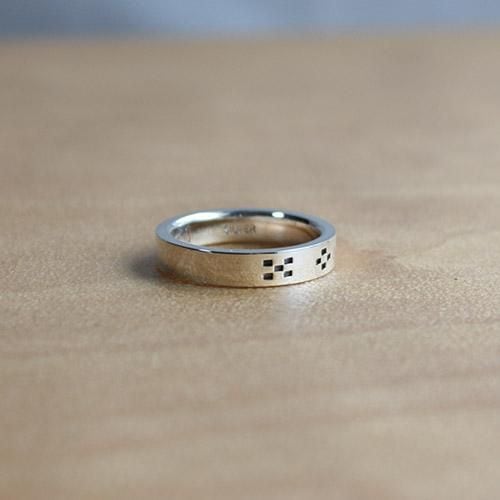 平打ちのリングを鏡面に磨き上げ、ミンサー柄をデザインしました。