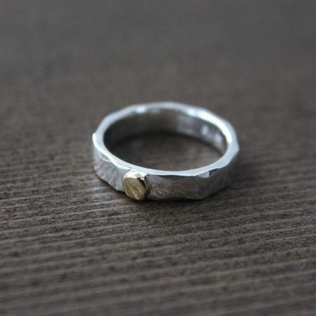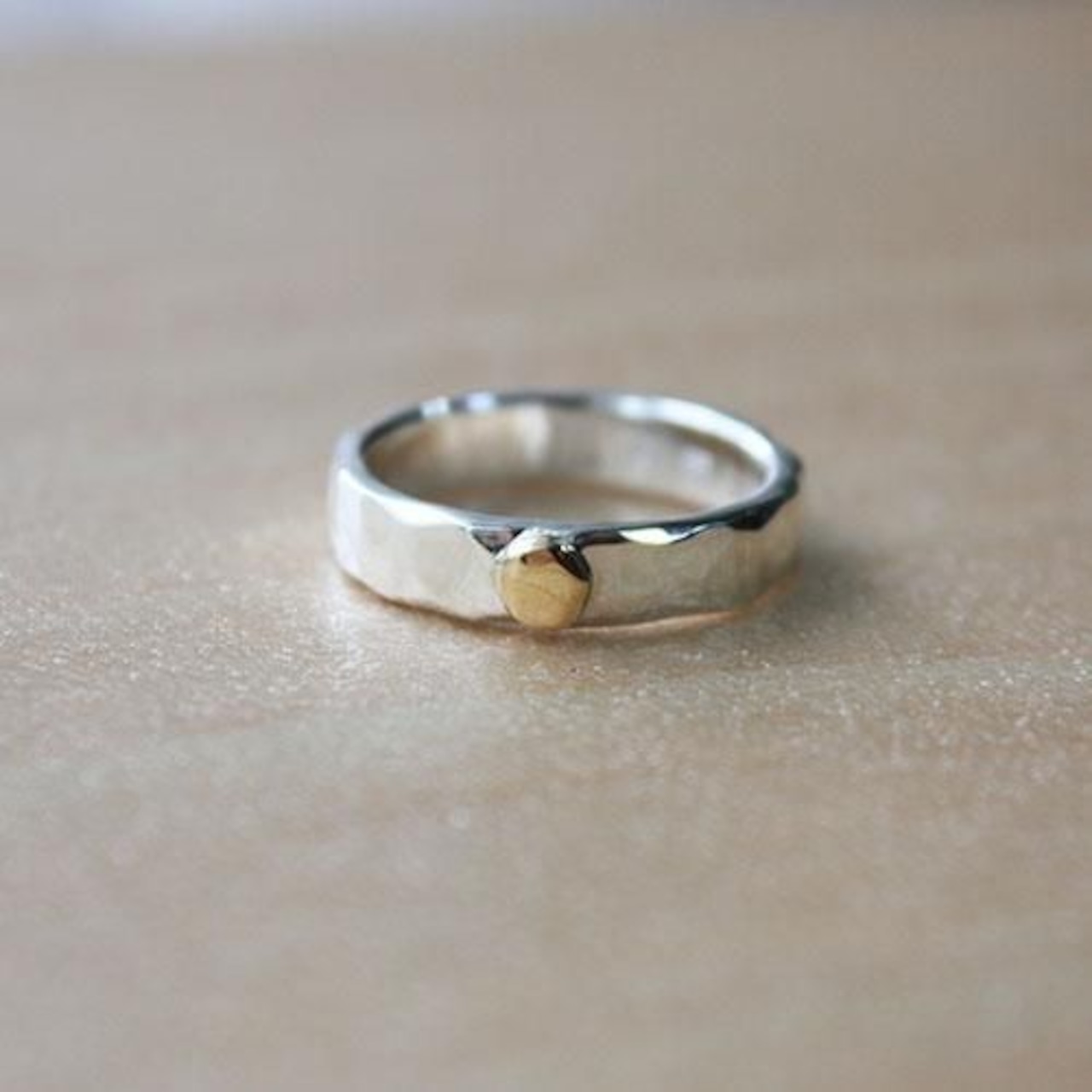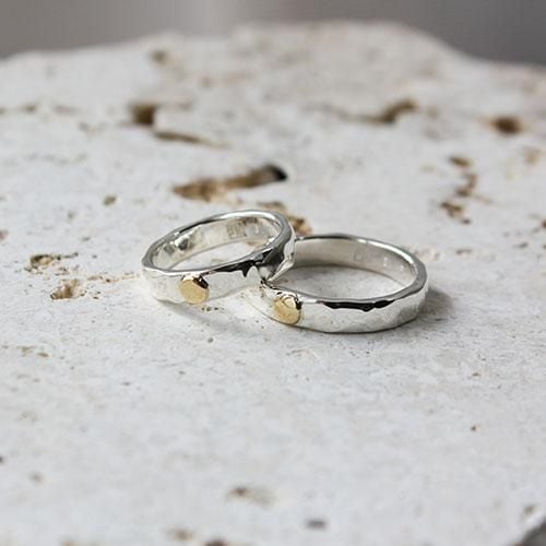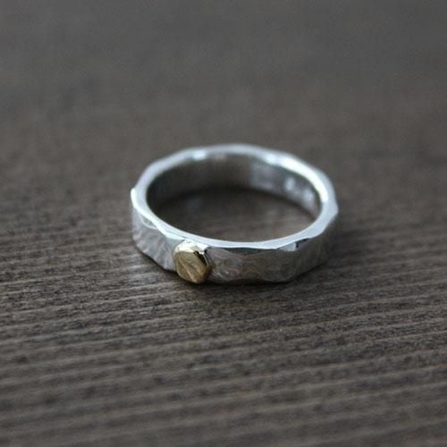 シンプルな槌目リングに太陽を表す18金の粒をロウ付けしました。
