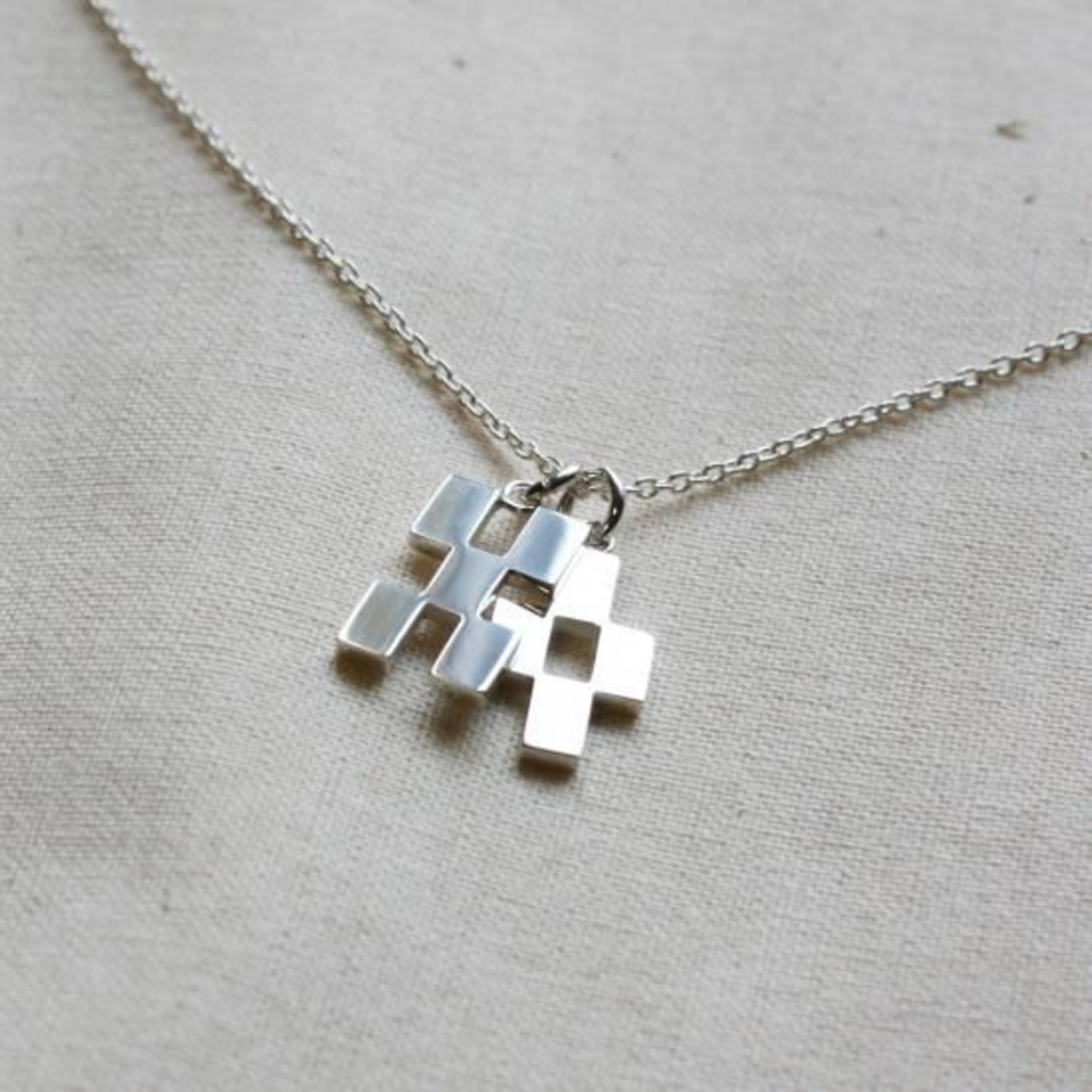 厚み1.5mmの銀板を八重山ミンサー柄の形に一枚一枚切り出したシンプルなペンダントです。