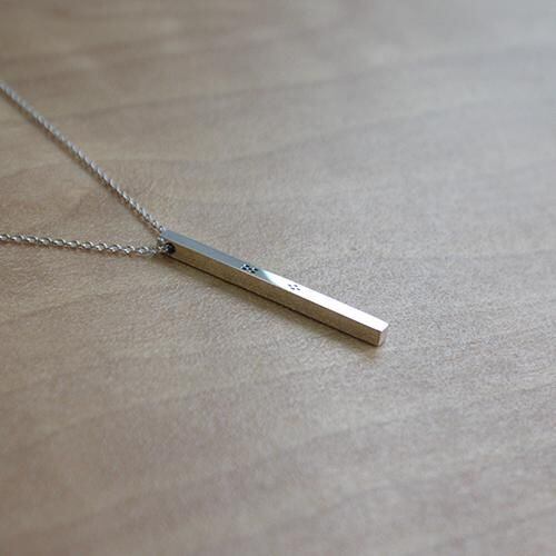 シルバーの角棒にミンサー柄を入れたシンプルでスタイリッシュなペンダントです。