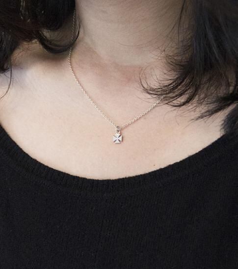 針突(ハジチ)シリーズのペンダントで、シルバーの板をマンダマーナ(四弁花紋)の紋様に切り抜きました。