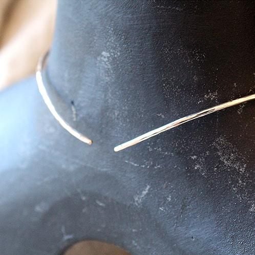叩き出して作った2mmのピンクシルバーの丸棒を曲げて、チョーカーにしました。