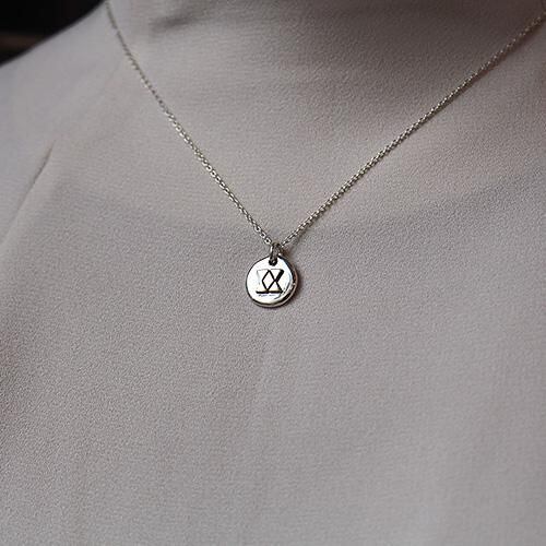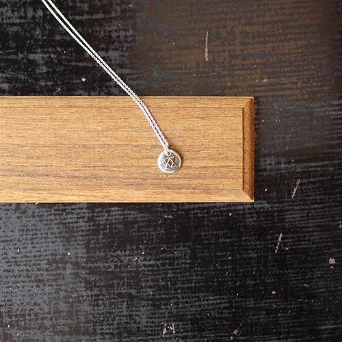 針突(ハジチ)シリーズのペンダントで、真鍮(しんちゅう)の板をイチチブシ(五つ星)の紋様に切り抜き、コイン状のシルバーにロウ付けしました。