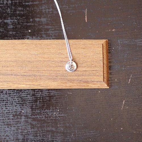 針突(ハジチ)シリーズのペンダントで、真鍮(しんちゅう)の板をマンダマーナ(四弁花紋)の紋様に切り抜き、コイン状のシルバーにロウ付けしました。