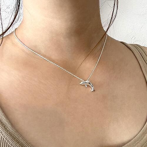 トップのチャーム部分のイルカは頭から尾までが約20mm、横ヒレの幅は約9.5mm