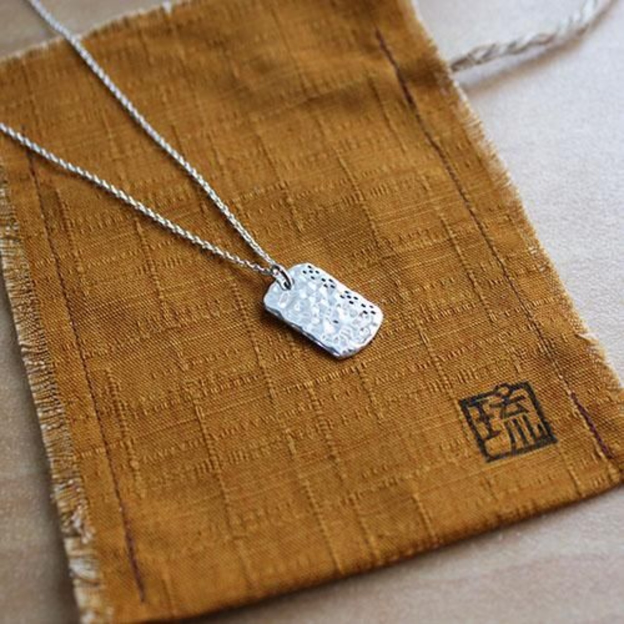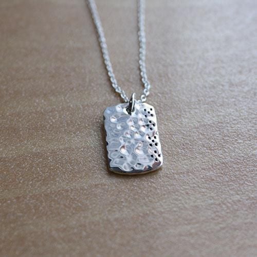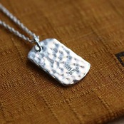小型のIDペンダントを槌目に仕上げ、ミンサー柄をデザインしたペンダントです。