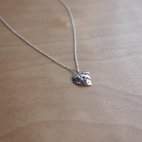 このペンダントは沖縄にも多く自生し、観葉植物としても有名なモンステラをモチーフにしました。