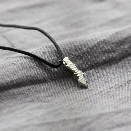 rp-03のシルバーチェーンの代わりにロウ引きの綿の紐を付けて長めに使用することを可能にしました。
