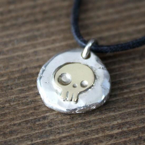 銀の塊から叩いて延ばしたコインの上に真鍮のどくろをロウ付けしています。