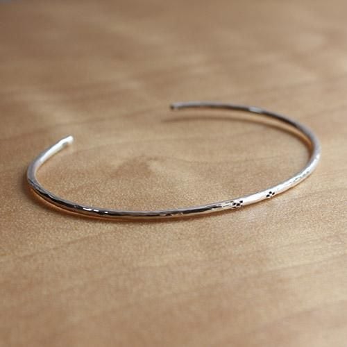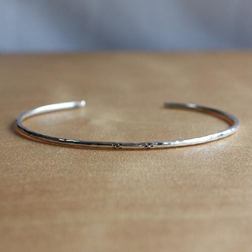 槌目の丸線で作ったバングルにミンサー柄をデザインしました。
