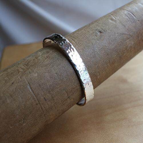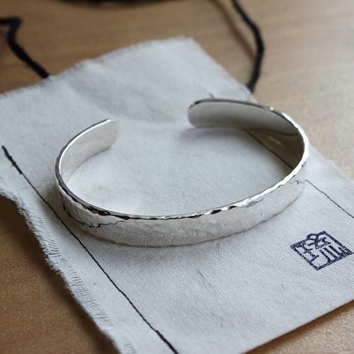 極太の銀材を使った平打ちのバングル、小さいサイズです。