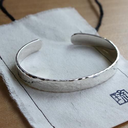 極太の銀材を使った平打ちのバングル、大きいサイズです。