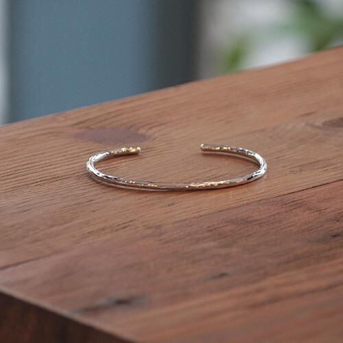 銀の塊から作った直径3mmの銀線を作りバングル状にしています。