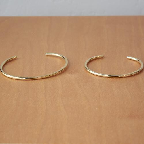 真鍮(しんちゅう)の丸棒をそのまま鏡面に磨き上げた細身のバングルです。