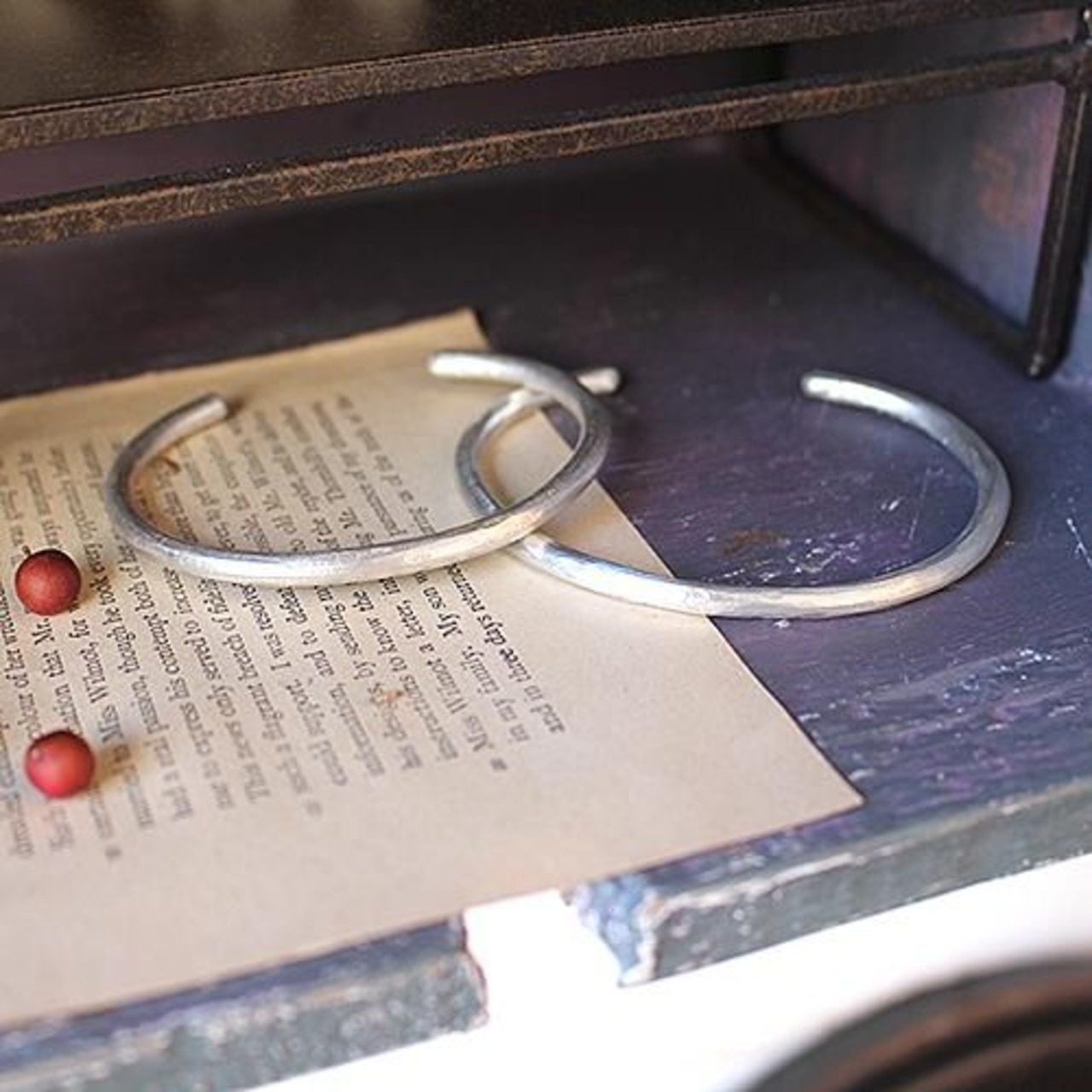 槌目のついた直径4mmの丸線で作りつや消しに仕上げました。