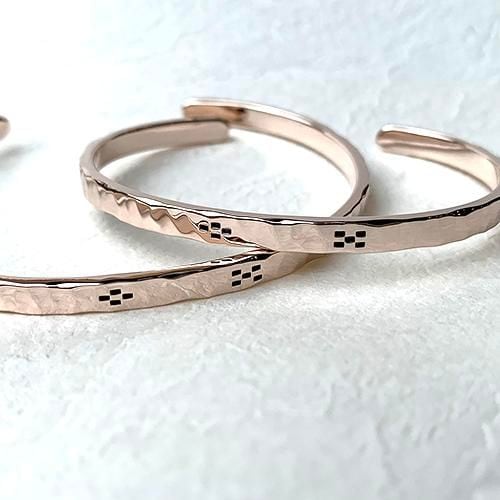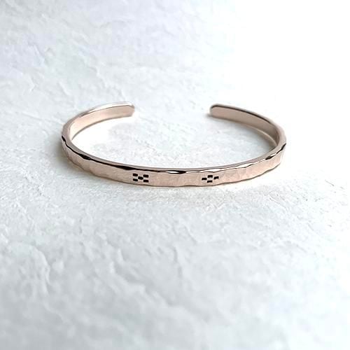 槌目のピンクシルバーにミンサー柄をデザインしたバングルです。