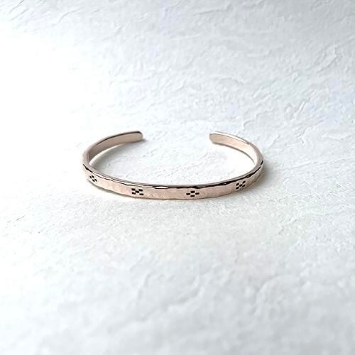 槌目のピンクシルバーにミンサー柄をデザインしたバングルです。