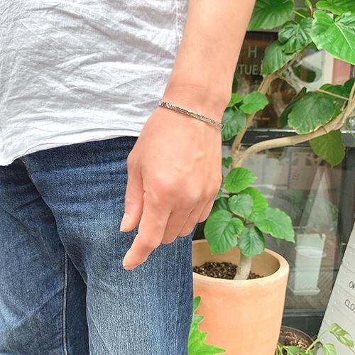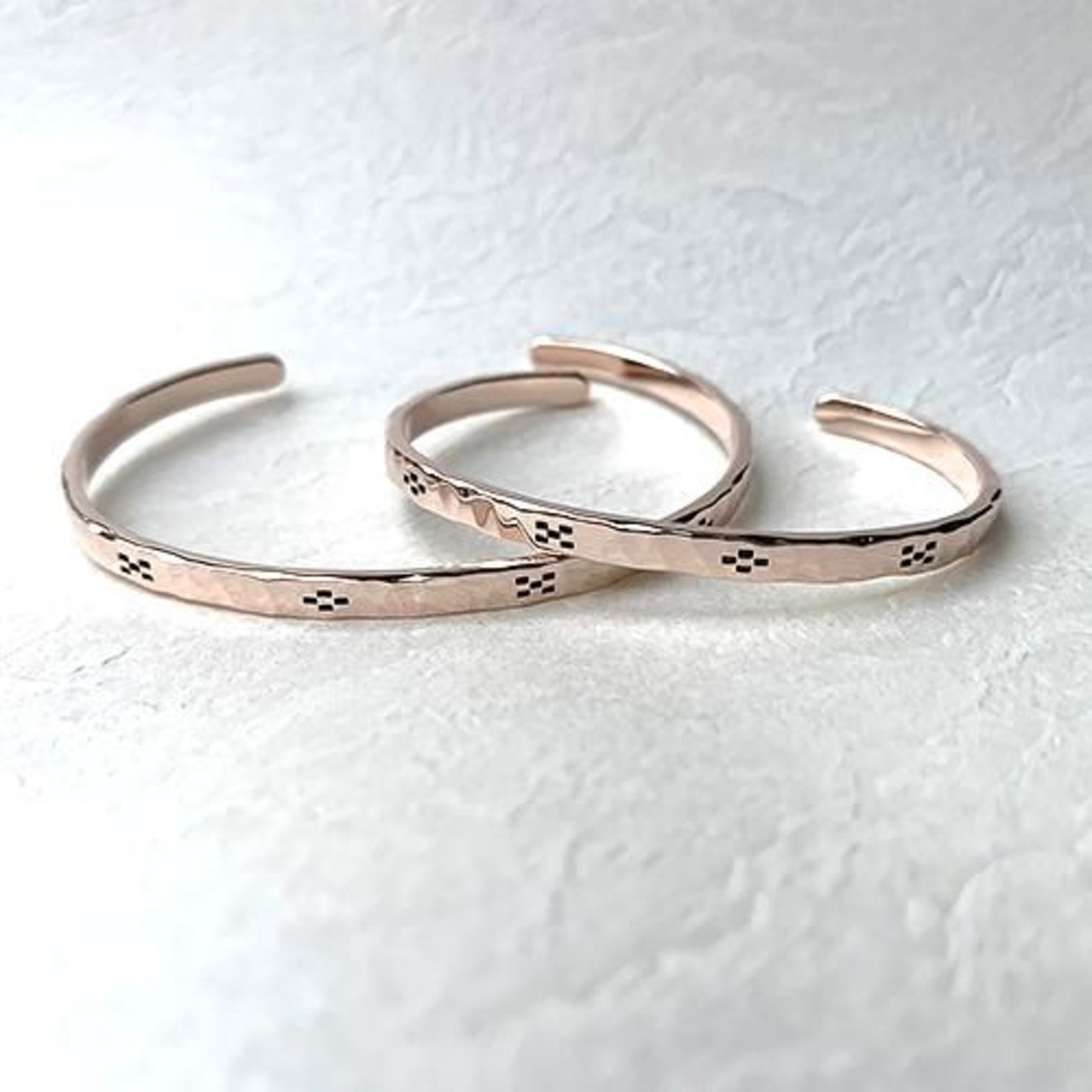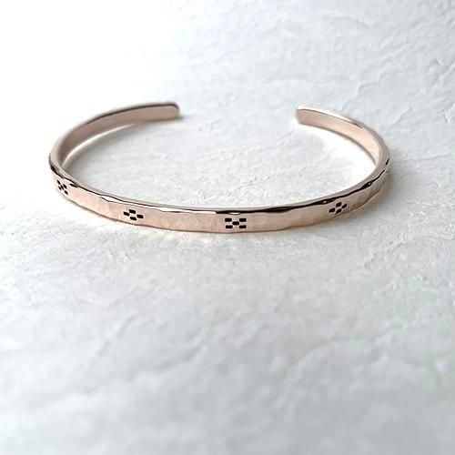 槌目のピンクシルバーにミンサー柄をデザインしたバングルです。
