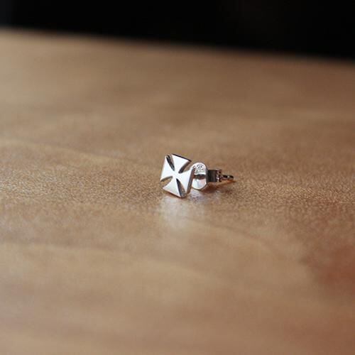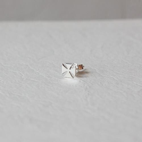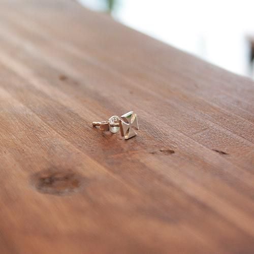 針突(ハジチ)シリーズのピアスで、シルバーの板をマンダマーナ(四弁花紋)の紋様に切り抜きました。