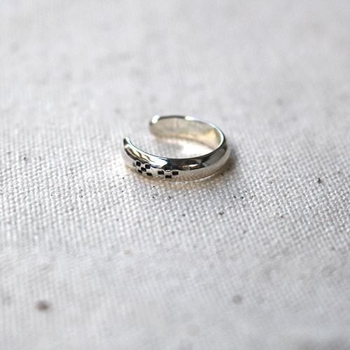 シルバーの甲丸線で作ったミンサー柄入りのイヤーカフです。