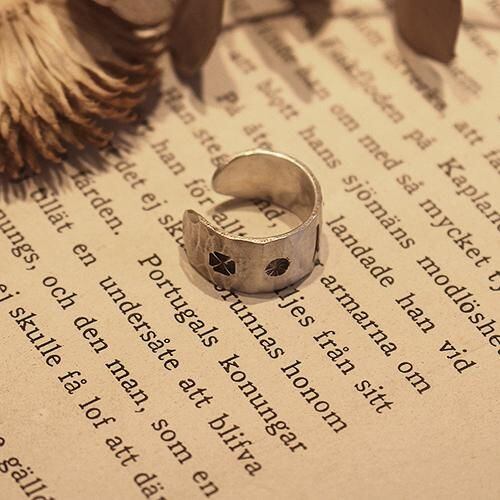 シルバーの板で作ったハジチ柄入りのイヤーカフです。