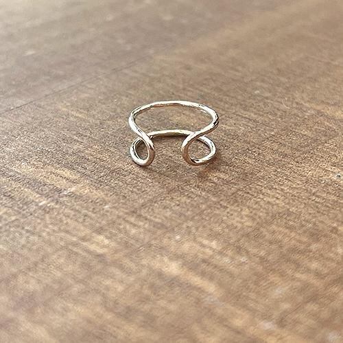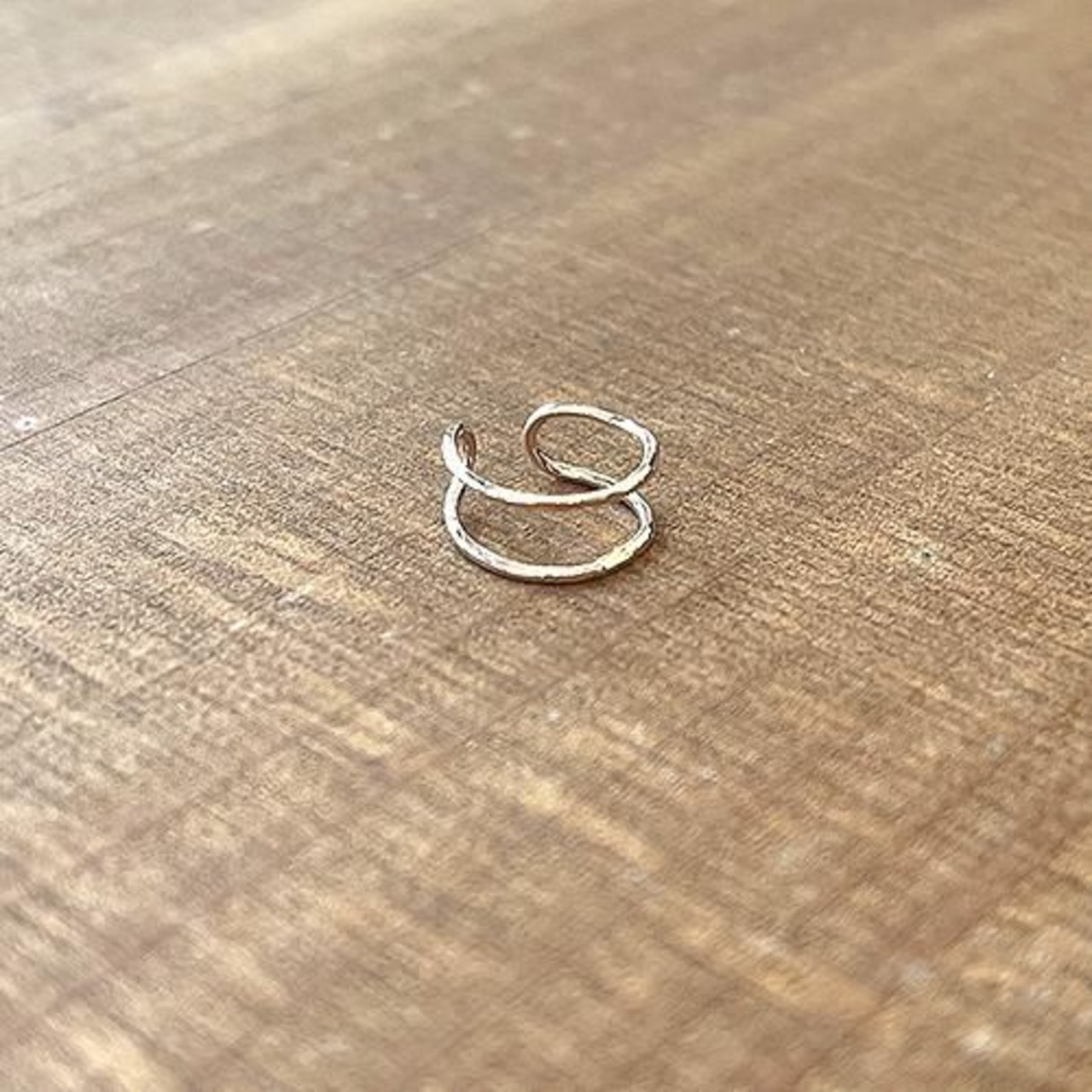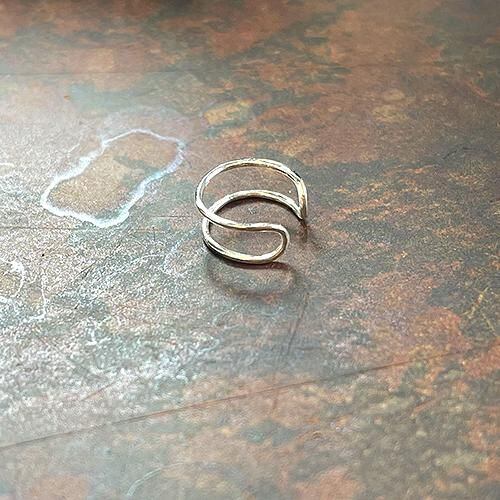 細いピンクシルバーの銀線で作った二重のC型イヤーカフ片耳分です。