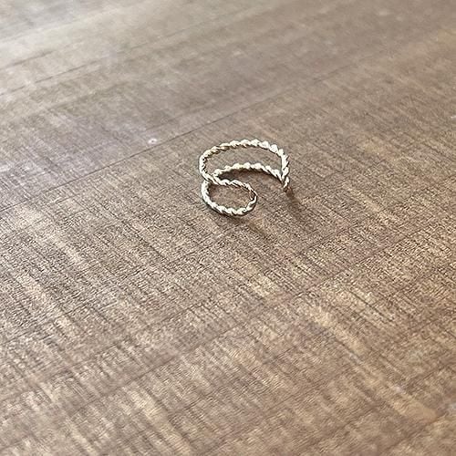 細いピンクシルバーの銀線を捻って作った二重のC型イヤーカフ片耳分です。