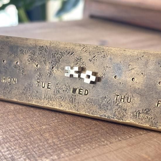 八重山ミンサー柄の形に切り出したコロッとして可愛いピアスです。