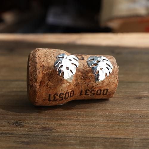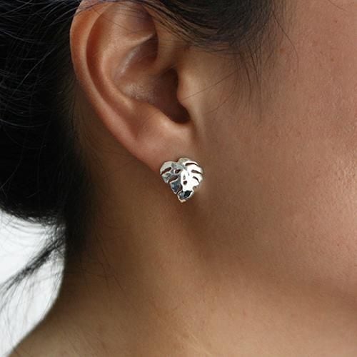 このピアスは沖縄にも多く自生し、観葉植物としても有名なモンステラをモチーフにしました。