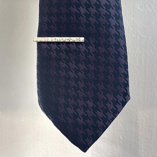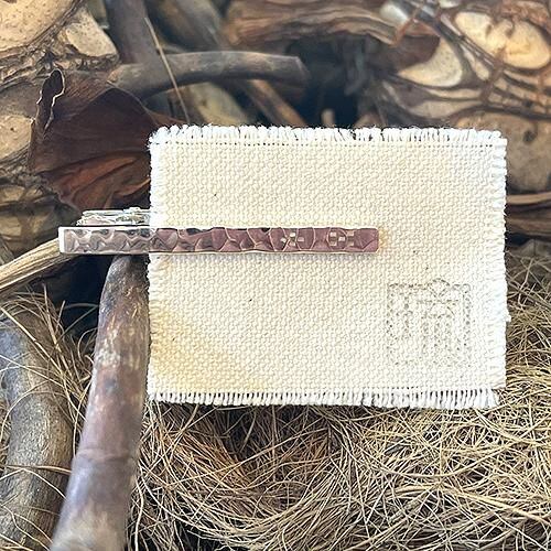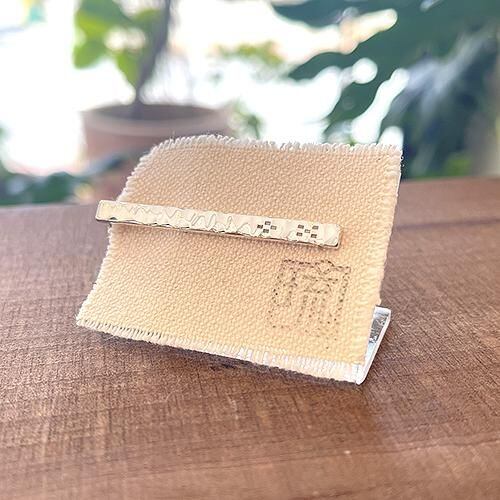 ミンサー柄の部分に螺鈿細工を施したネクタイ留めです。